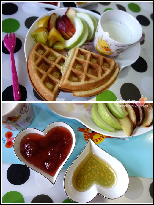 今日早餐是水果鬆餅佐草莓果醬&舞月蜜