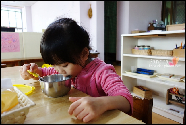 小朋友解散準備吃點心小寶才發現我,她也沒有因為覺得媽媽晚來了而哭哭