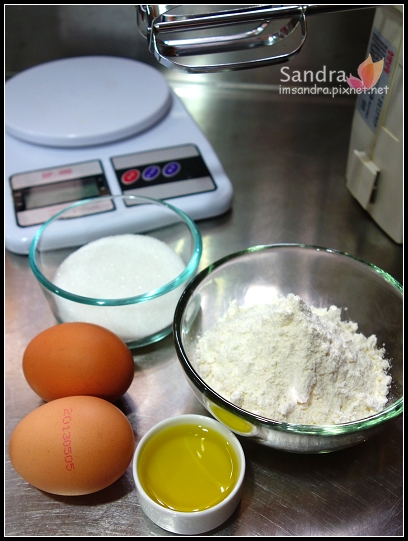 海綿杯子蛋糕材料只有:蛋、糖、麵粉、植物油(我用橄欖油)
