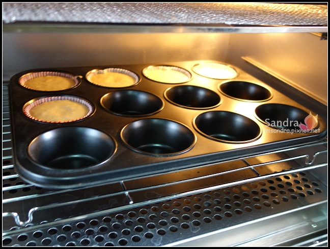 蛋糕麵糊入模裝填約9分滿,喜歡杯子蛋糕高過紙杯一些,裝飾起來比較可愛