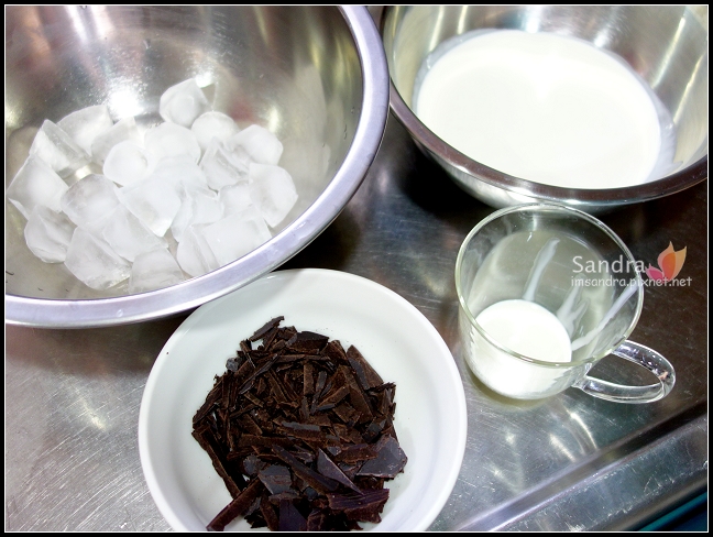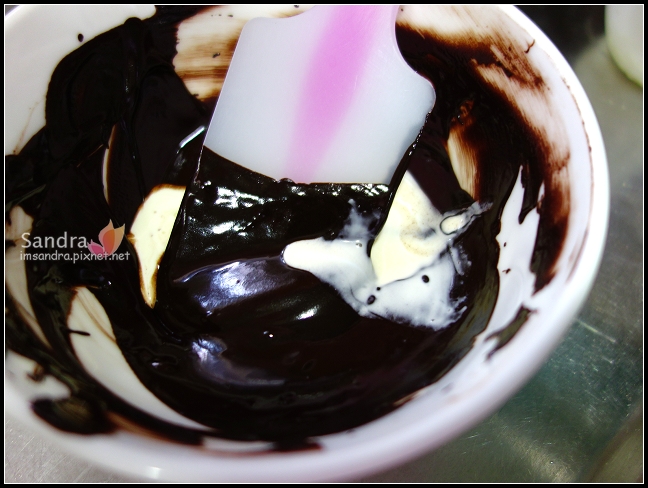 就像這樣 T^T ,巧克力不夠熱鮮奶油又太冰,變成巧克力碎片鮮奶油了啦!