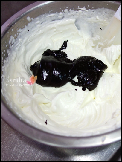 材料簡單也不用分蛋打發,就決定用它來做蛋糕體,搭配巧克力鮮奶油霜