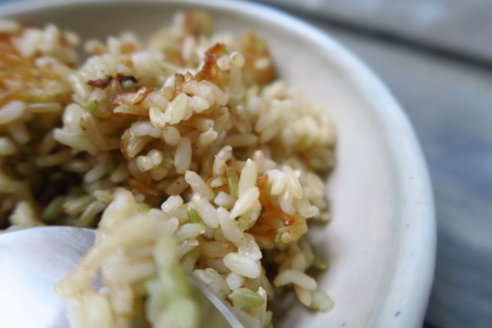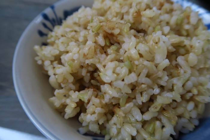 發芽米飯,可以清楚看到每顆飯粒上的小芽