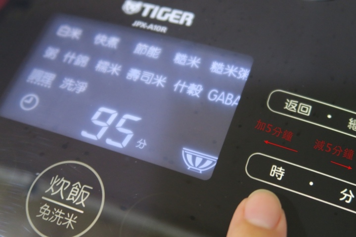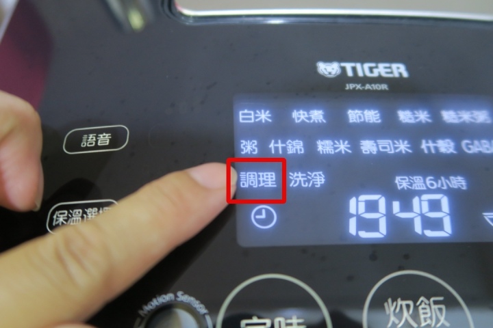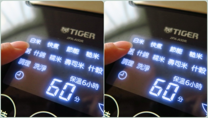 蓋好蓋子後直接按「糙米」,會看到選單文字下方有虛線閃動就是正確選好了